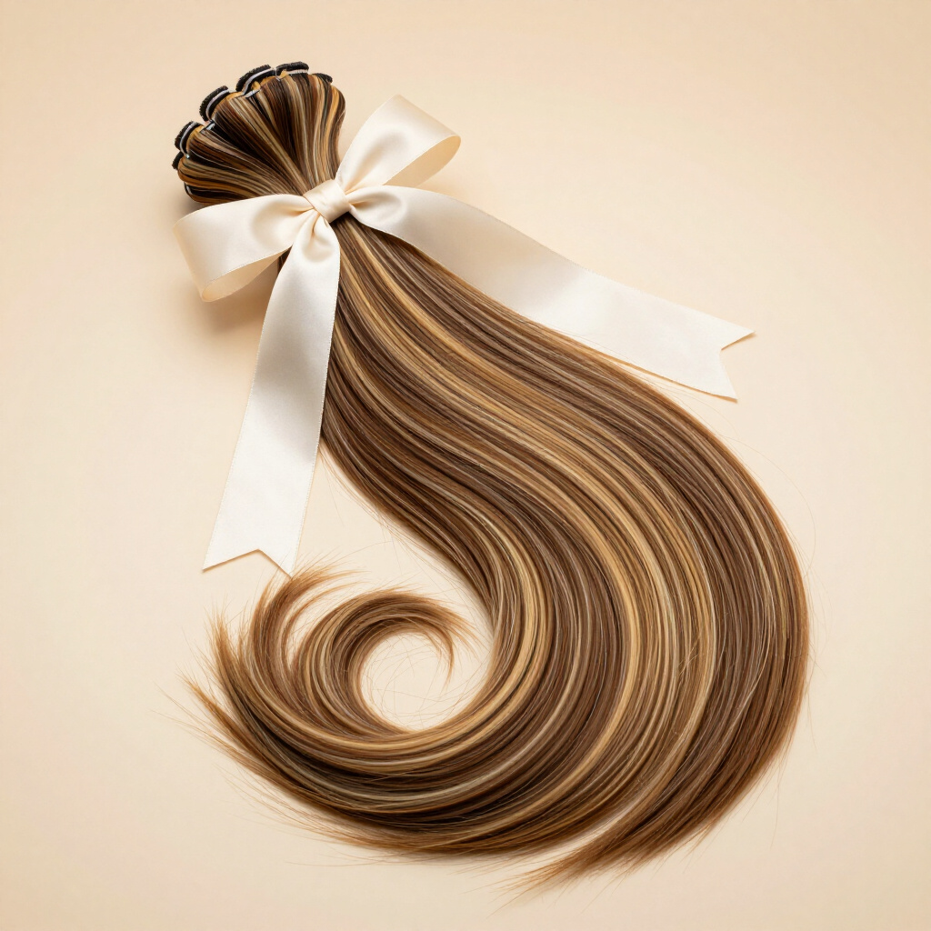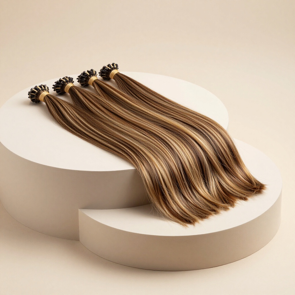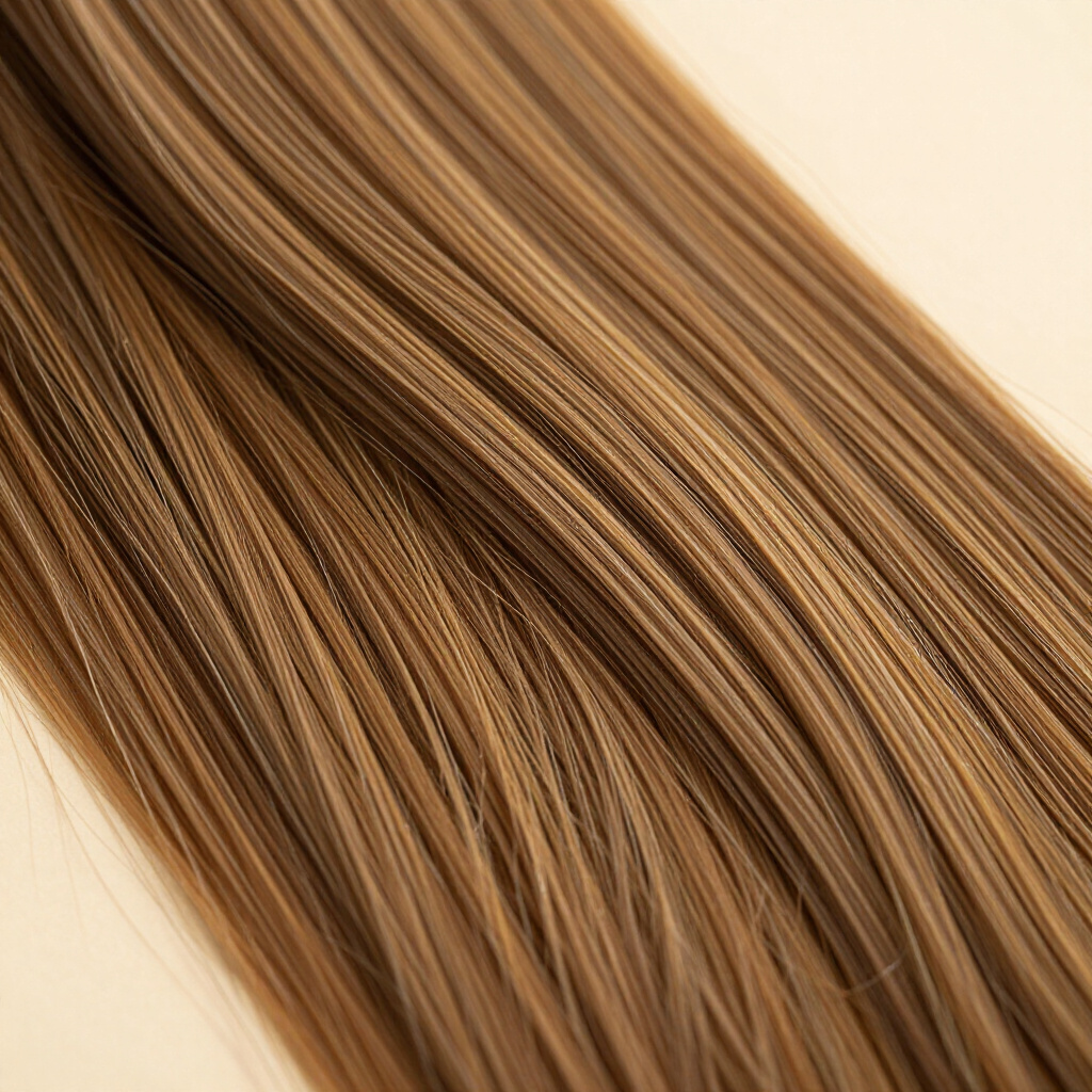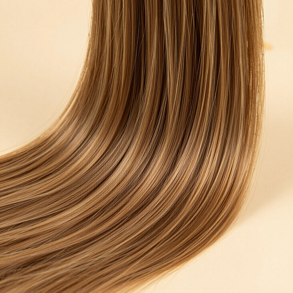 Expert tonal blending that makes extensions indistinguishable from natural hair with multi-dimensional depth.